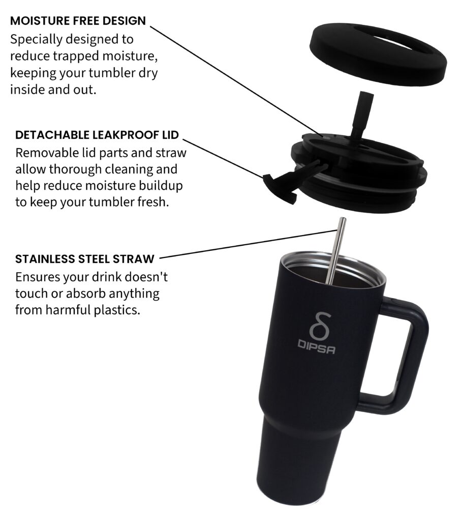 Premium 18/8 stainless steel, BPA-free silicone straw, and a matte powder-coated finish for durability and grip.